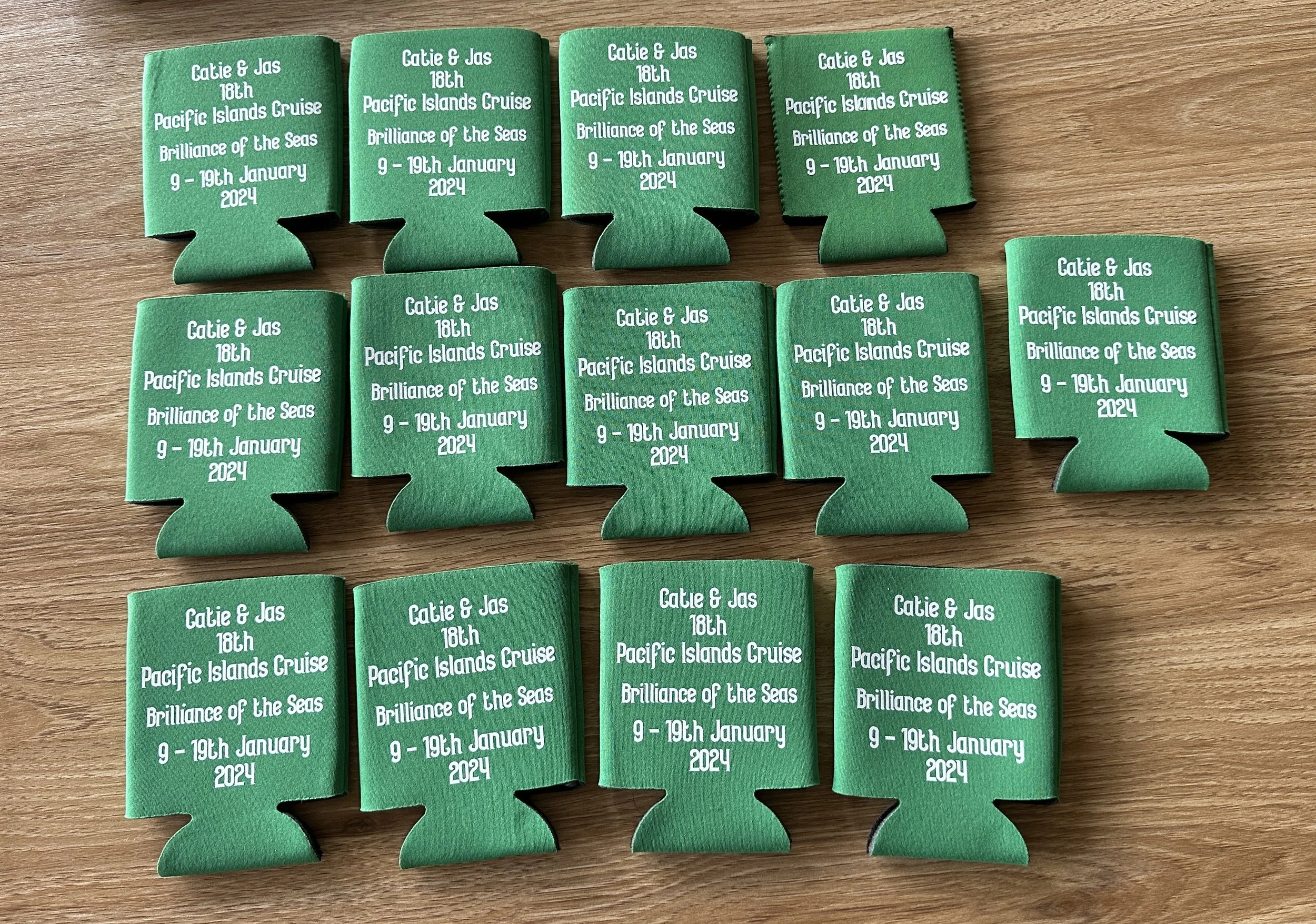 Your very own cooler, personalise your own stubby coolers for any special occasion. Weddings, Cruises, Parties or work events. Contact us today.
